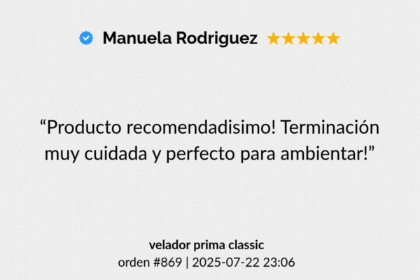 El Velador Prima Classic se consagra como nuestro diseño más icónico, avalado por una valoración de 4.94/5 estrellas por nuestros clientes. Es la pieza favorita que demuestra una calidad, presencia y funcionalidad comprobada por quienes ya la tienen en casa.